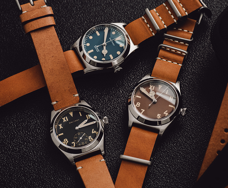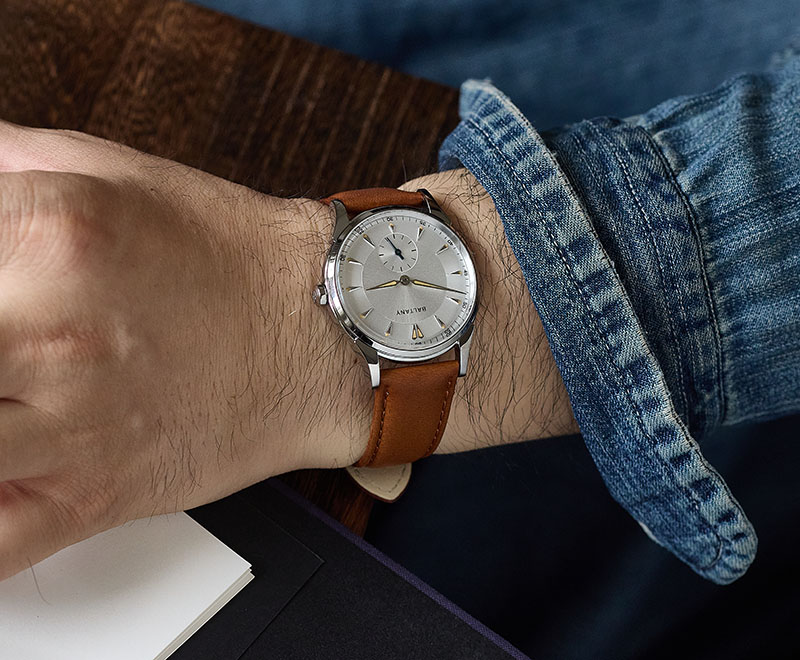 Blueing hands are a classic vintage element featured in Baltany’s vintage-inspired watches.