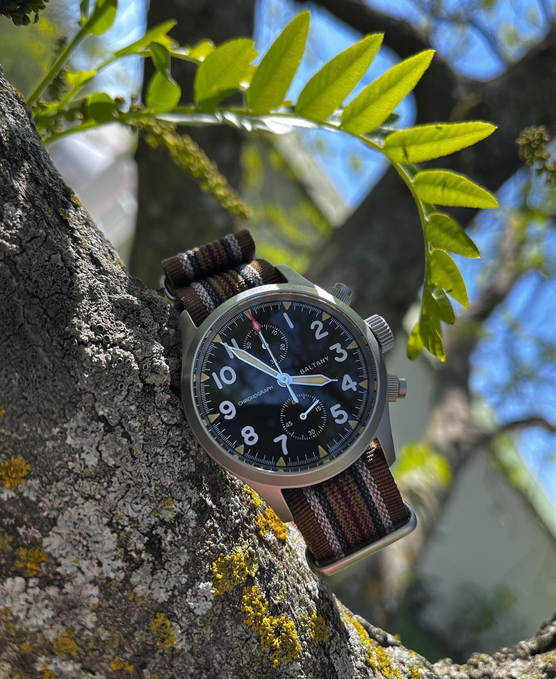 Following the success of the D12 tribute watch, Baltany began planning the production of a vintage military-style chronograph. The combination of vintage style, military aesthetics, and chronograph functionality is an intriguing yet niche concept, with only a few brands focusing on this segment.